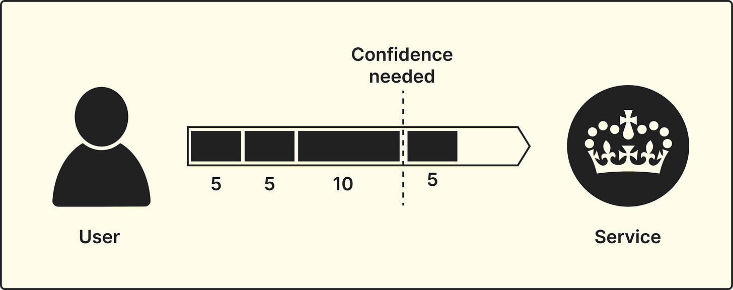 Services that involve money, like benefits, tend to need very high confidence, but there’s plenty of less contentious services (“ask for a new green bin”, say) that make do with low or no confidence. Who you are is irrelevant to them.
